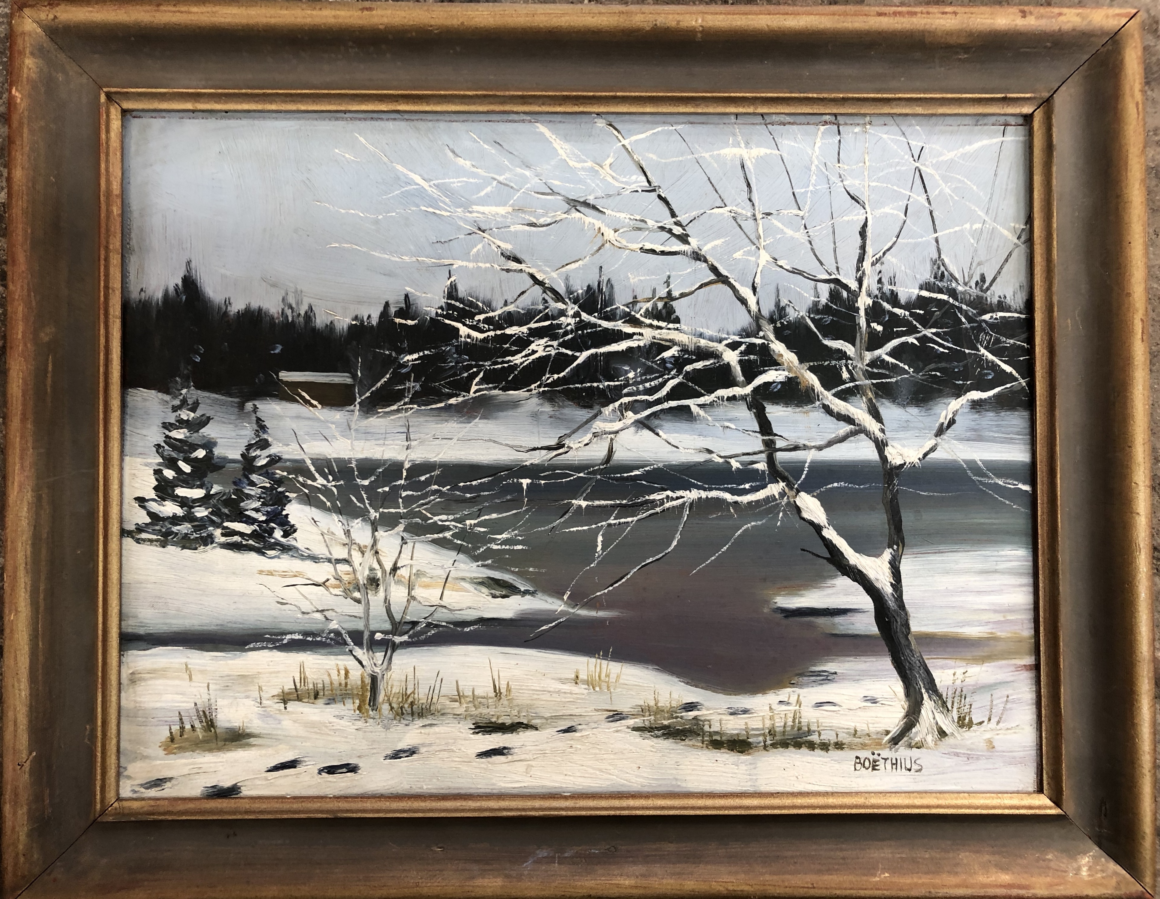 Lars Boëthius (1903-1968) Olja på pannå, Vinterlandskap, signerad Boëthius.
