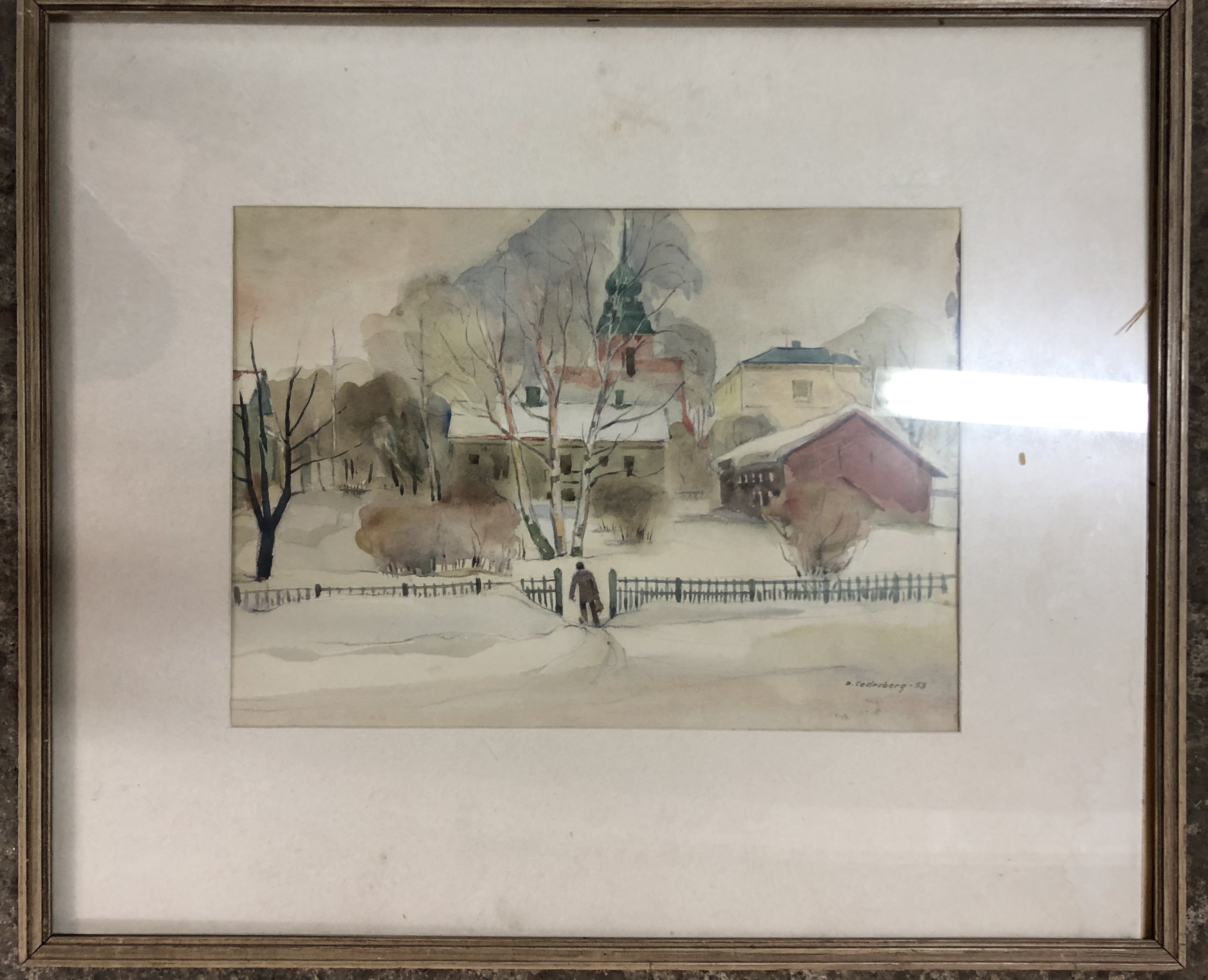 David Cederberg, Akvarell, vintermotiv. Signerad daterad -53.
