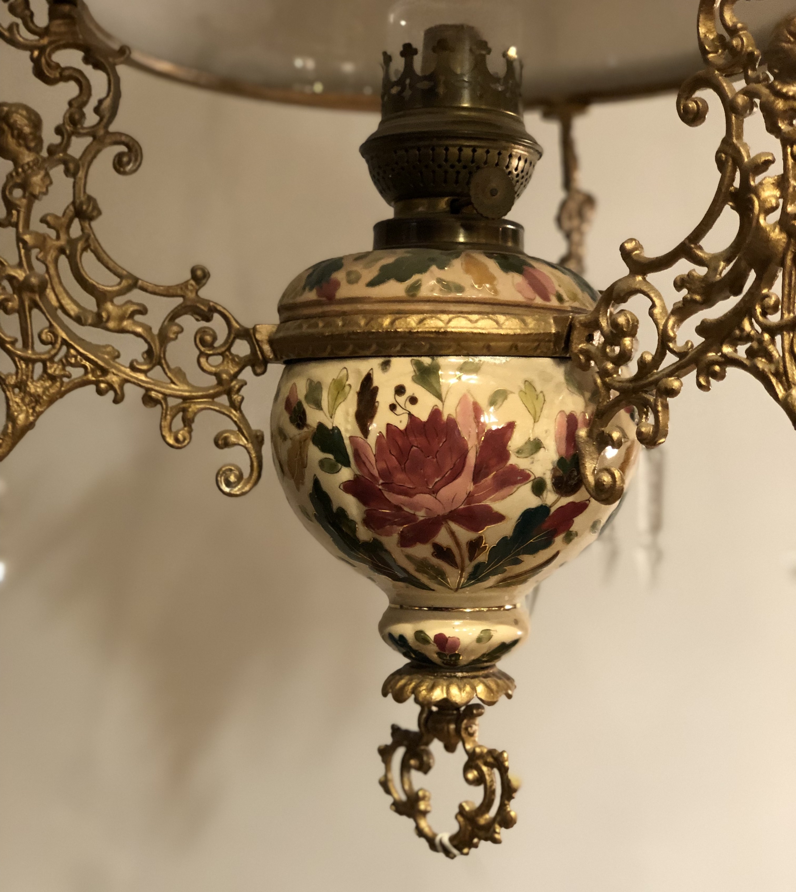 Fantastisk fotogen taklampa majolika, Rörstrand
