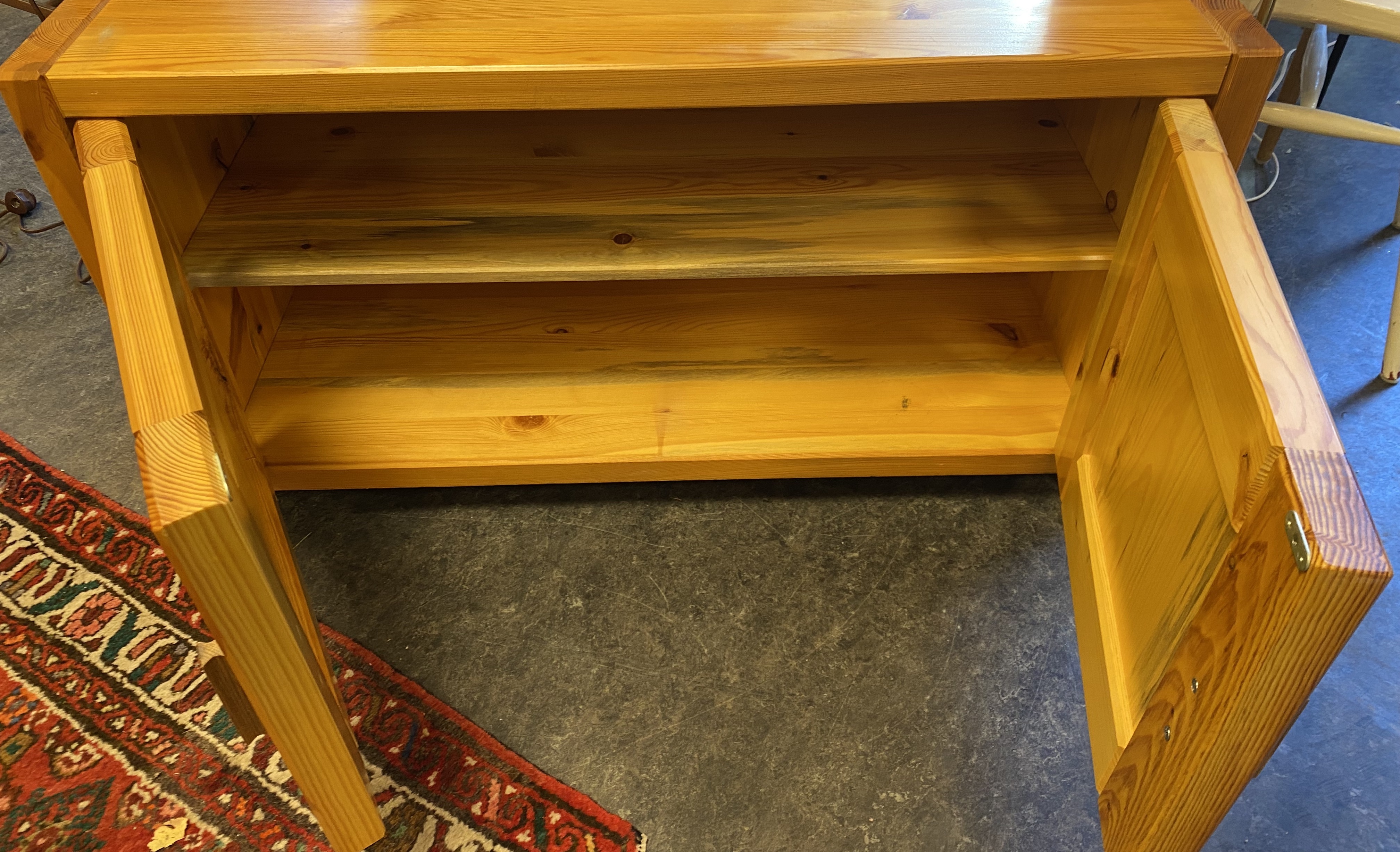 Tjock furu bokhylla, troligen Christer Larsson design för Sven Larsson Möbelshop.
