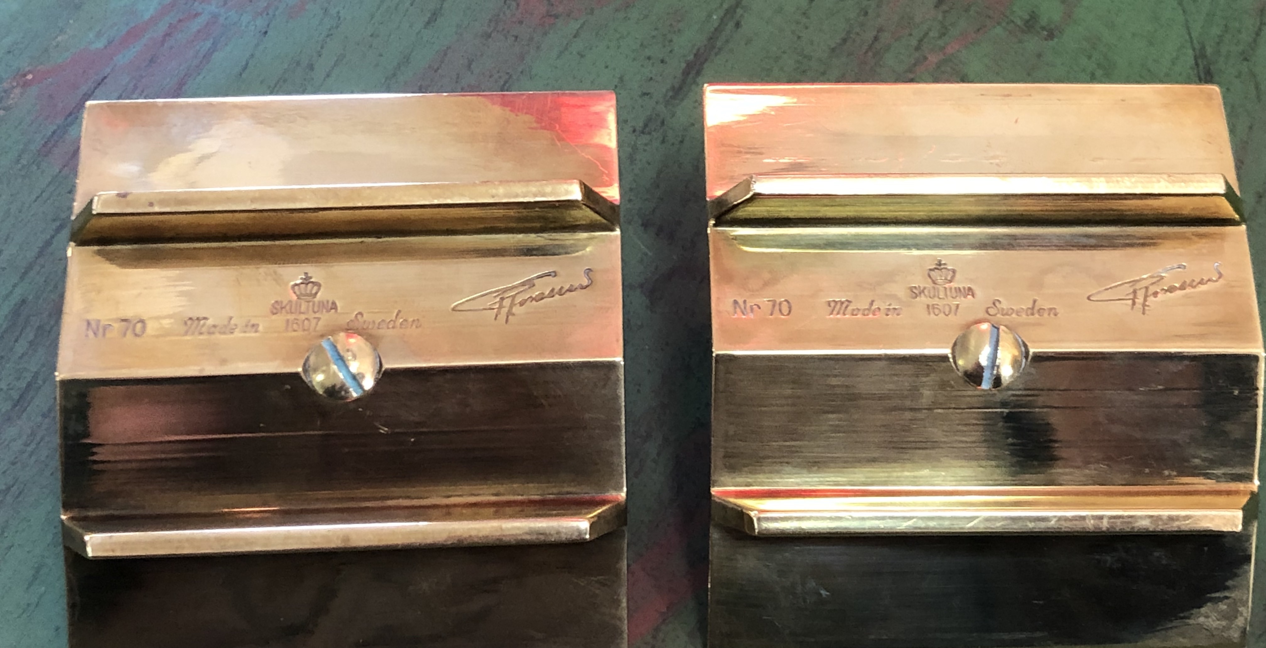 Ett par ljusstakar i mässing "Profil" Skultuna 1970-80 tal Design Pierre Forsell