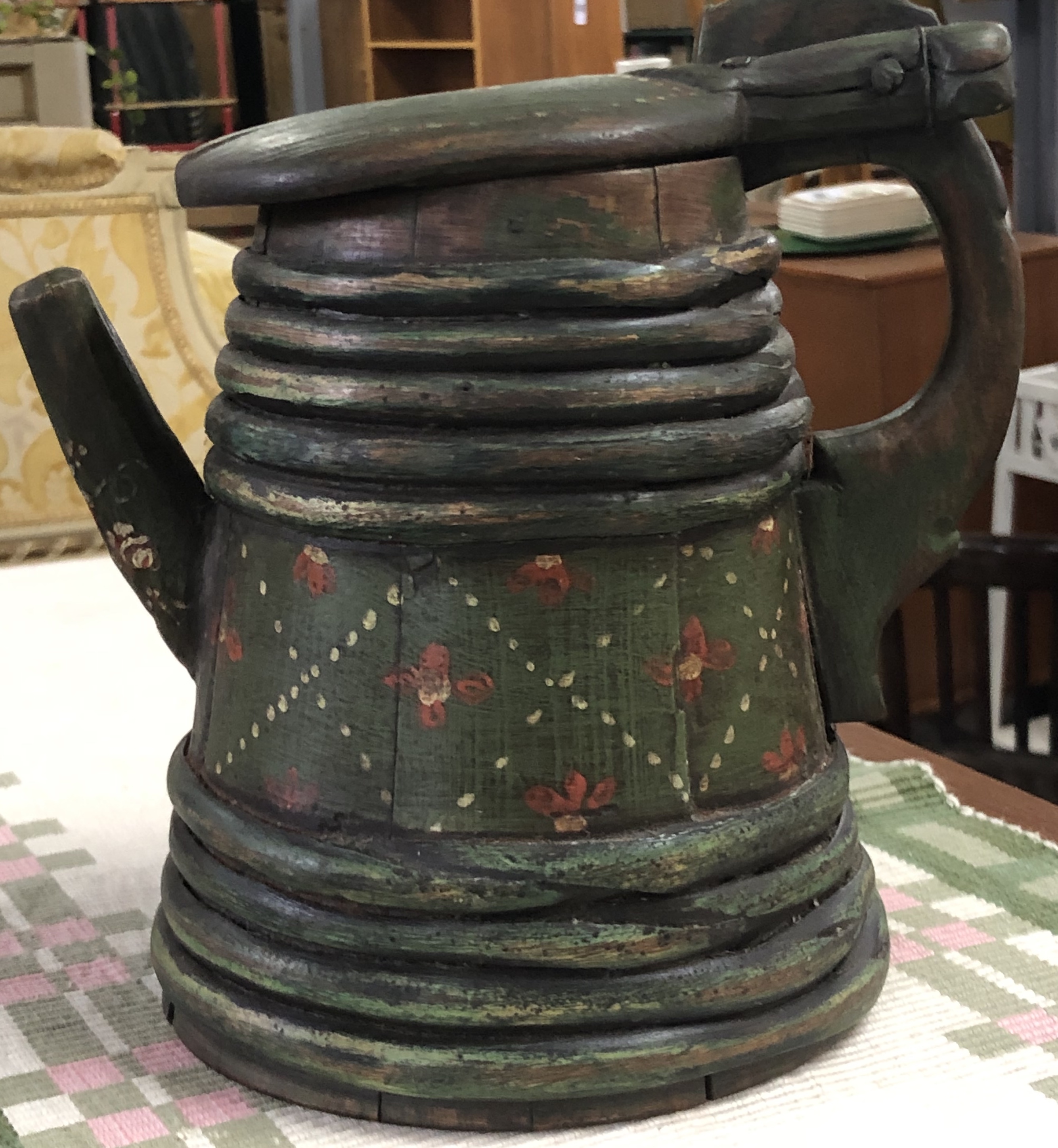Bemålad antik trästånka