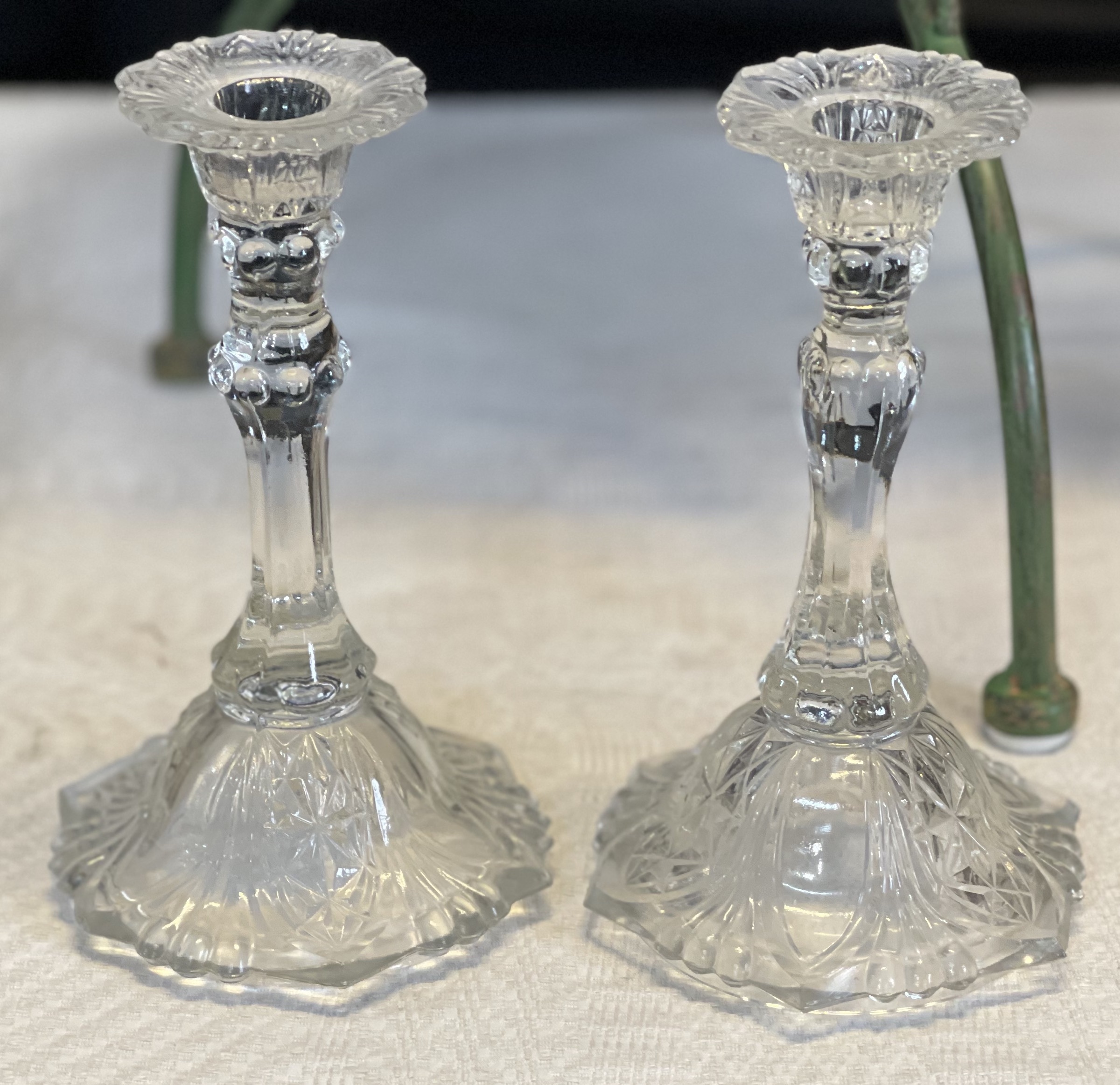 Två vackra ljusstakar i glas