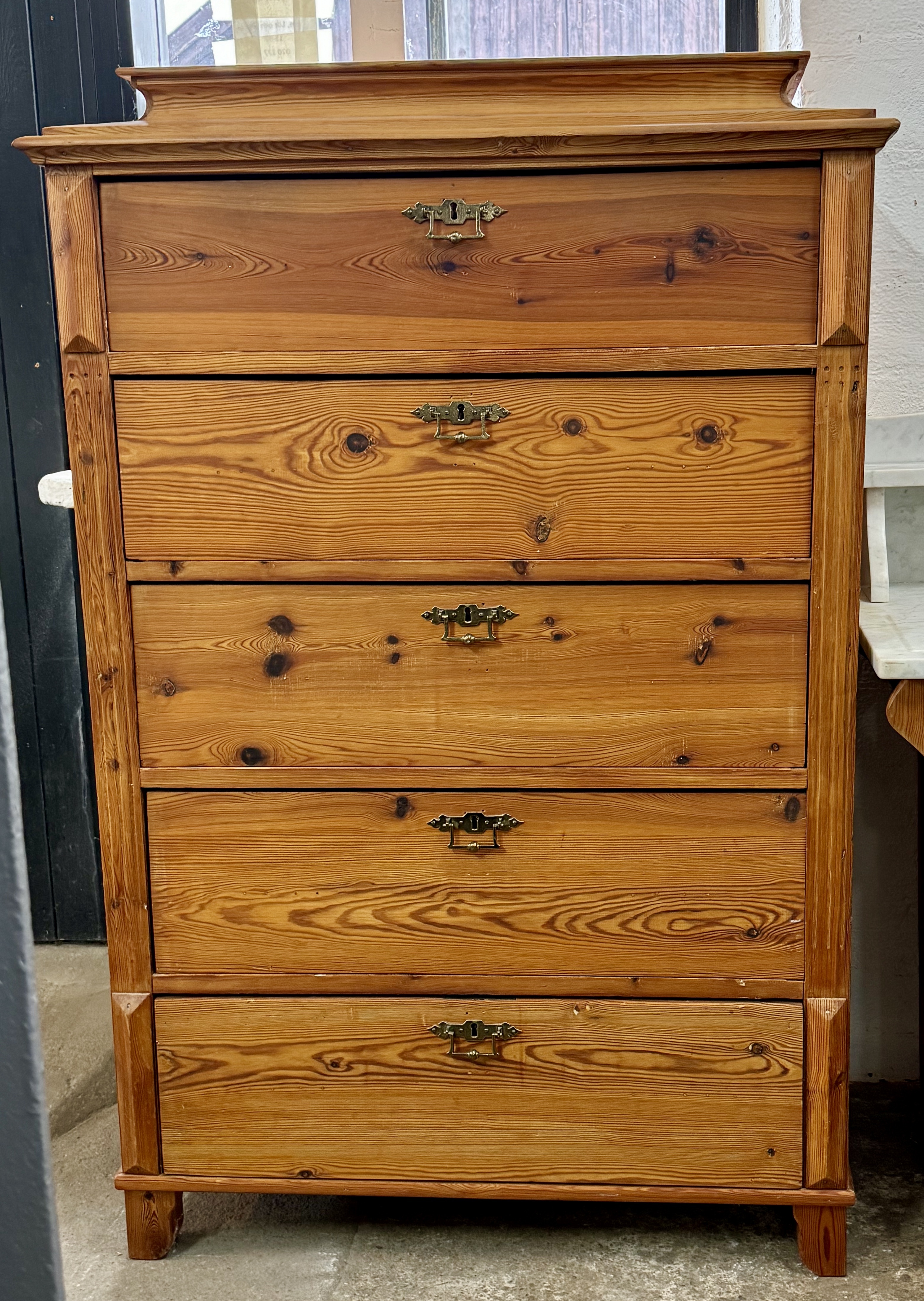 Välvårdad furu byrå med fem lådor, 1800 tal