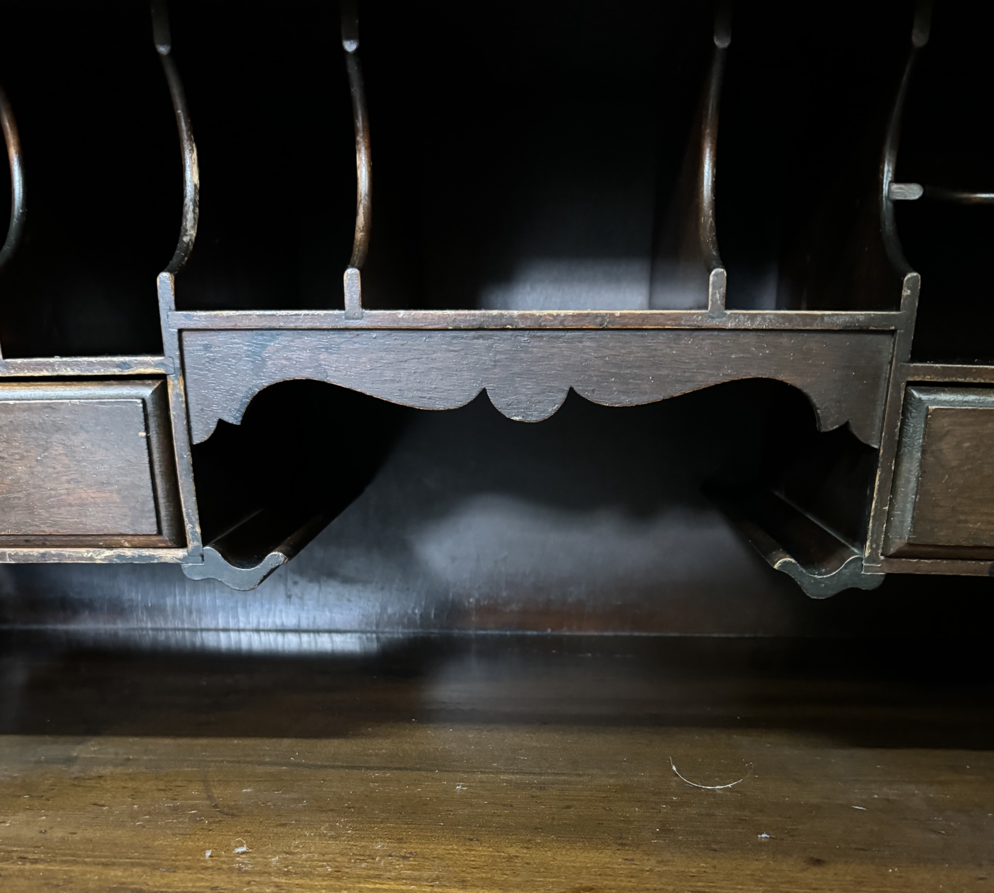 Vackert antikt engelskt skåp i valnöt George III, swan neck