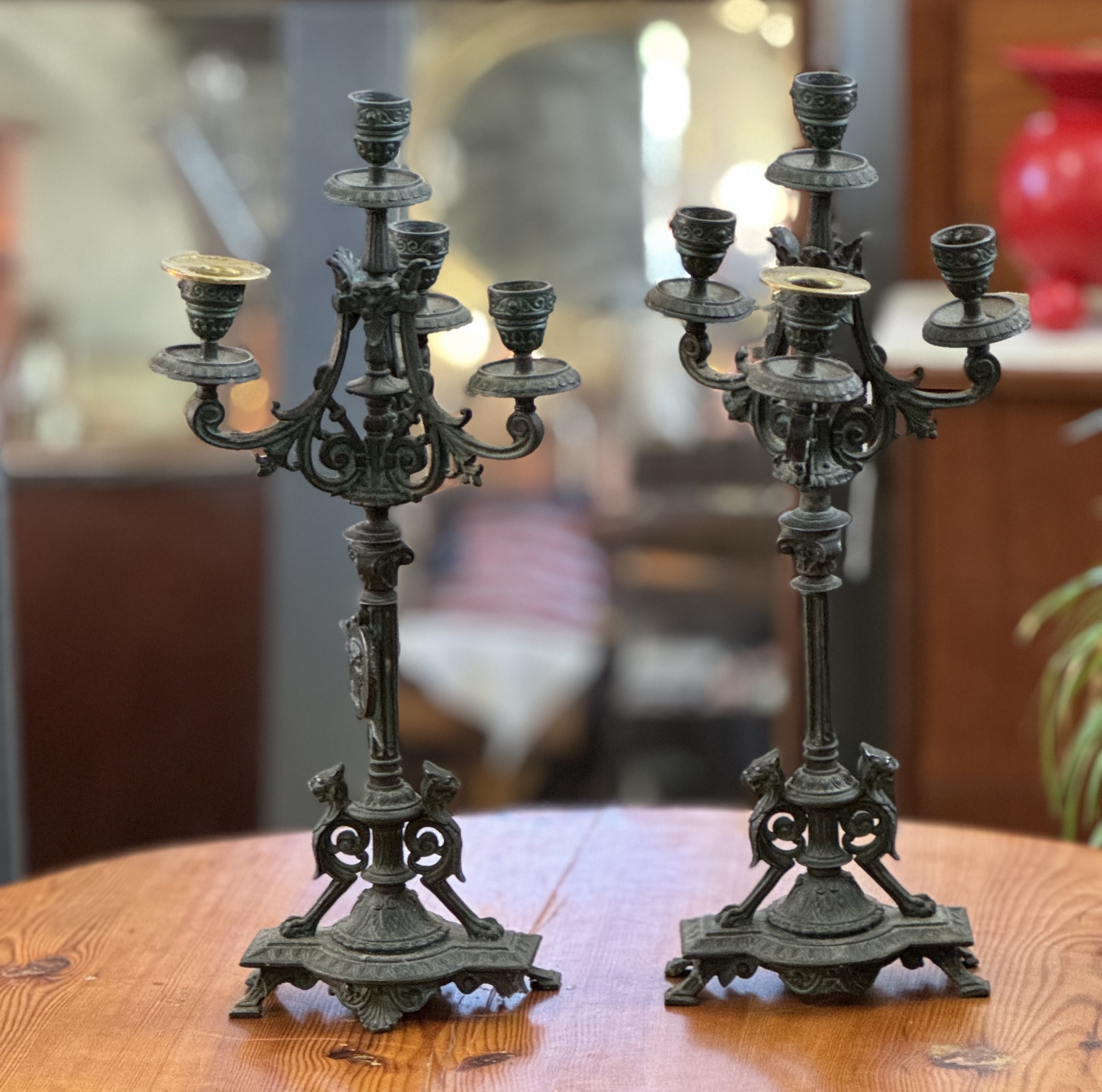 Två vackra kandelabrar i bronserad gjutgods Säljs tillsammans och priset är för bägge