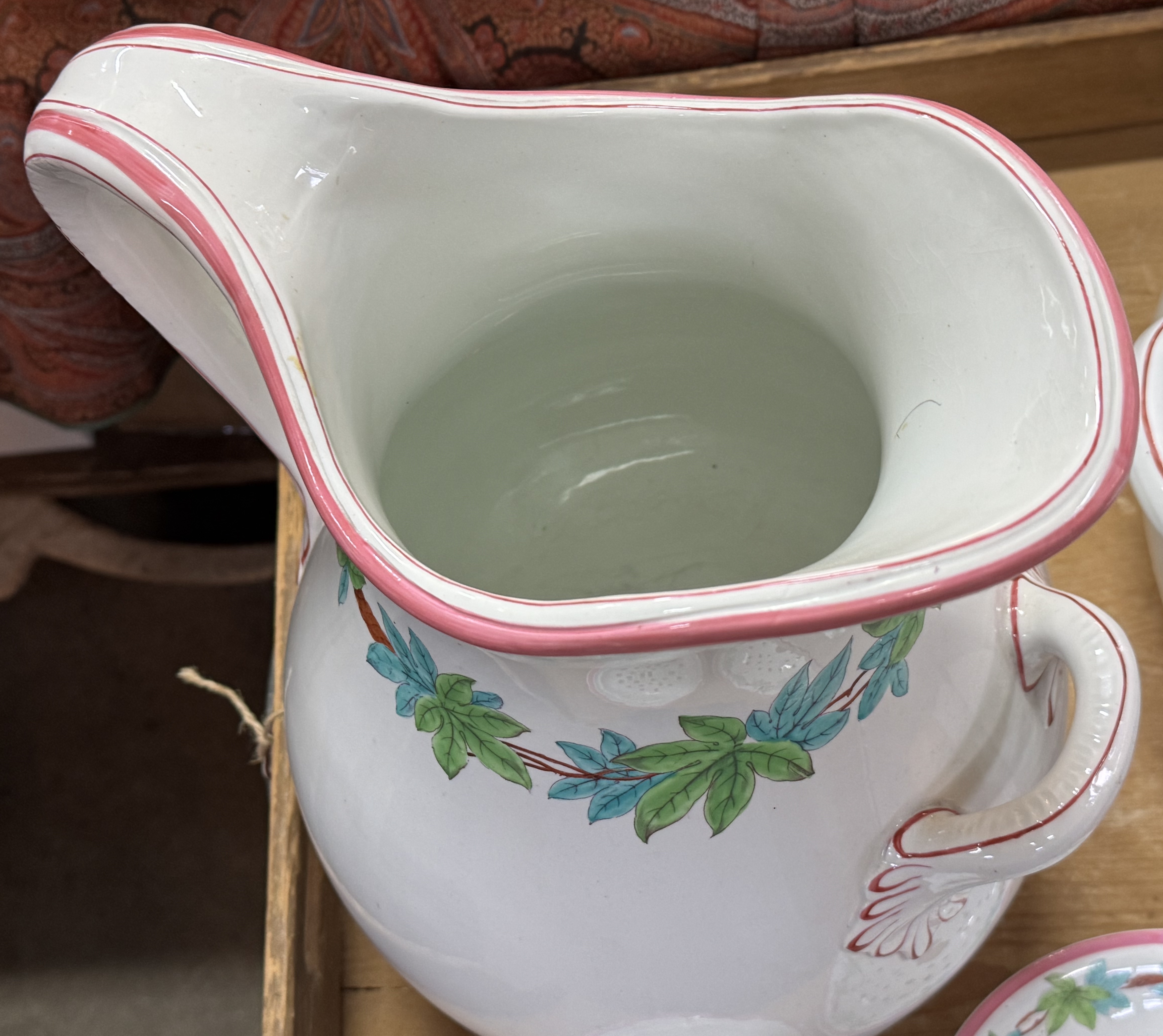 Underbart tvättset, Minton Pottery England, tidigt 1800-tal Stämplat BB, New Stone En kanna, ett tvättfat samt två tvålfat Priset är för alla delar Fler bilder www.refurn.se