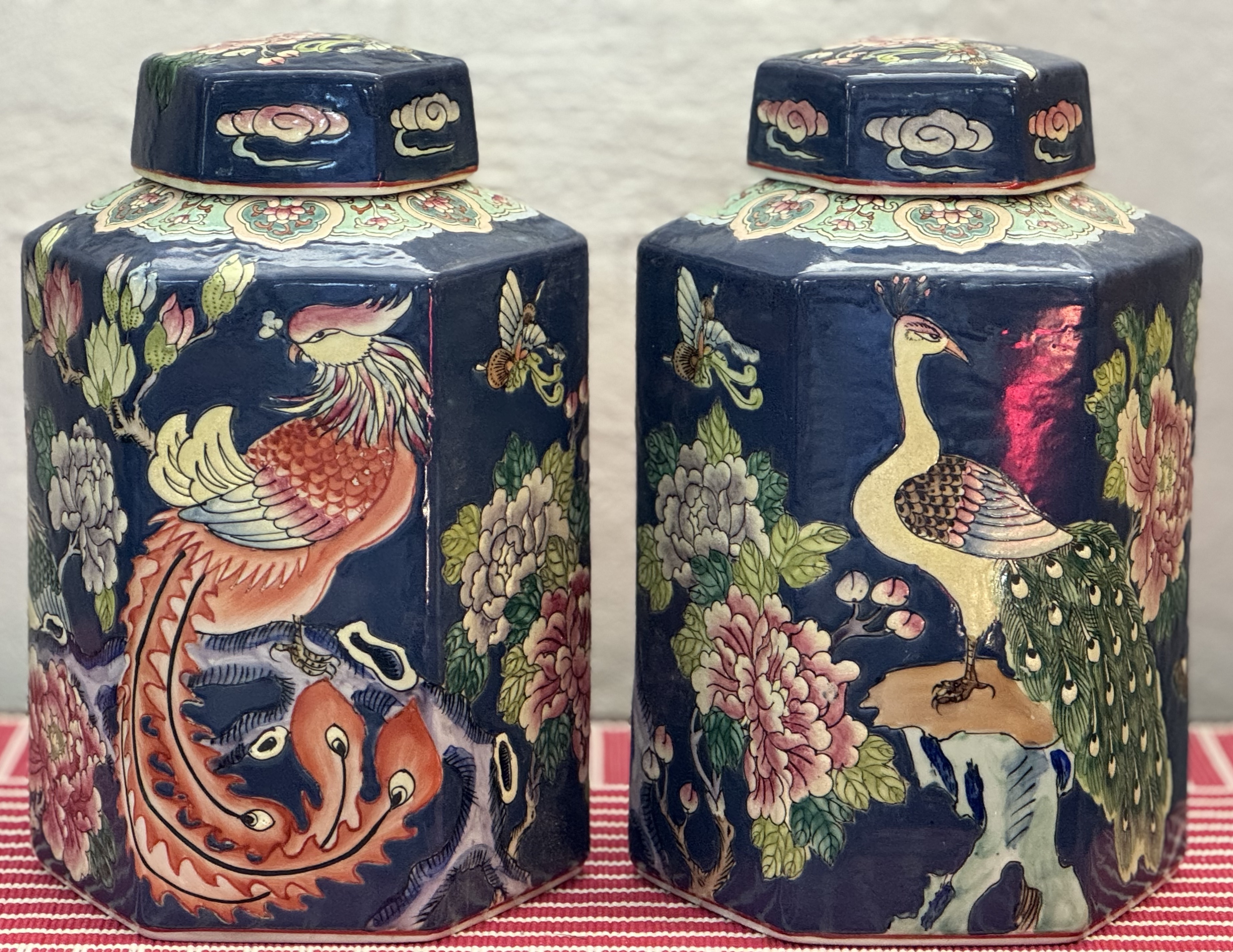 Ett par hexagonala Ginger Jars, Famille rose Blue, Kina