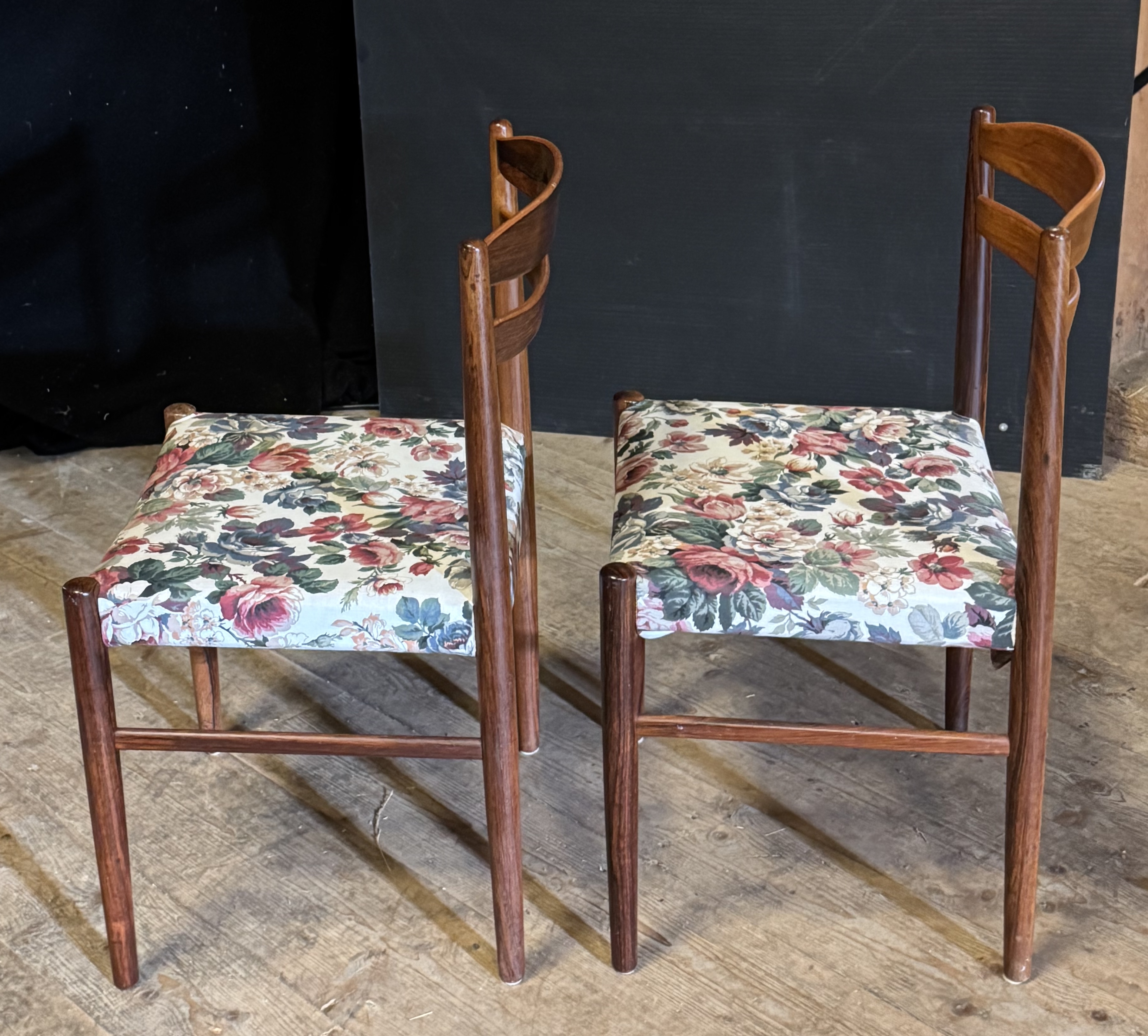 Ett par mycket fina och bekväma stolar i jakaranda, stämplade: Alb Johansson och söner, Hyssna Sweden Citesintyg från jordbruksverket medföljer Säljs tillsammans och priset är för bägge Fler bilder www.refurn.se