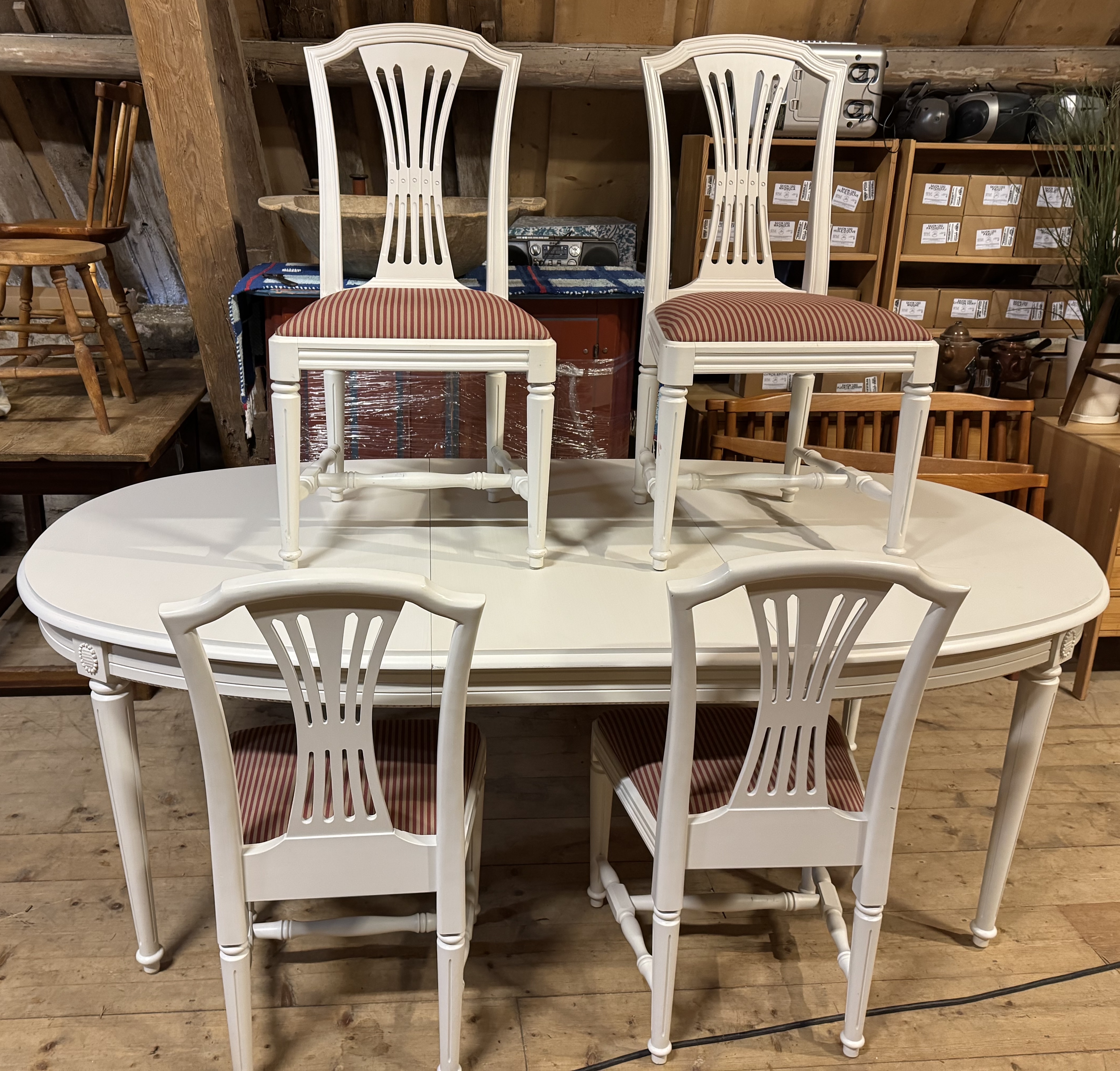 Mycket välvårdad matgrupp, Gustavus signum Ovalt matbord med en iläggsskiva samt fyra fina stolar Säljs tillsammans och priset är för hela gruppen Fler bilder www.refurn.se