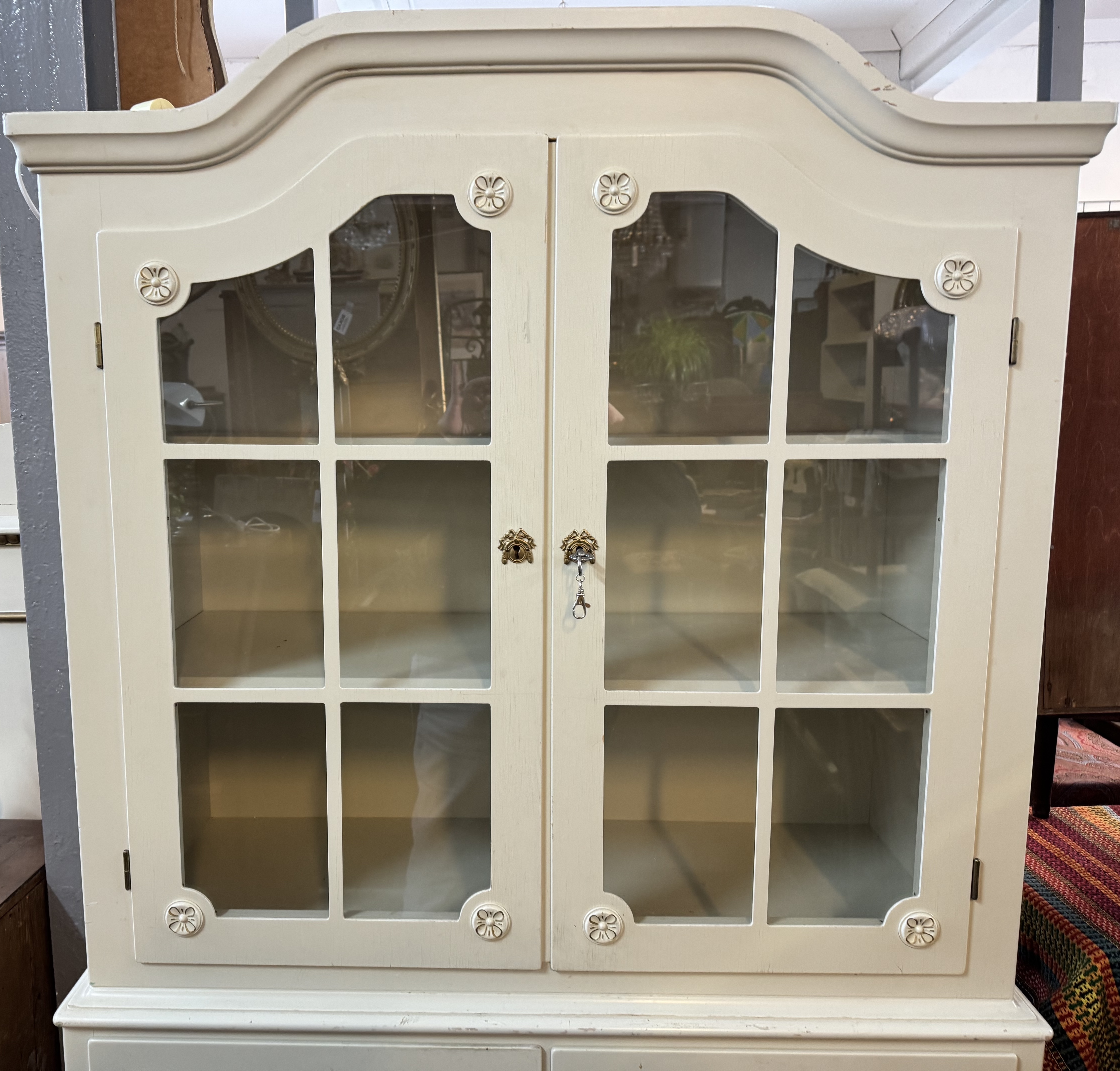 Härligt tvådelat vitrinskåp med belysning Gustavianskt stil, Tibro Nyckel finns Fler bilder www.refurn.se